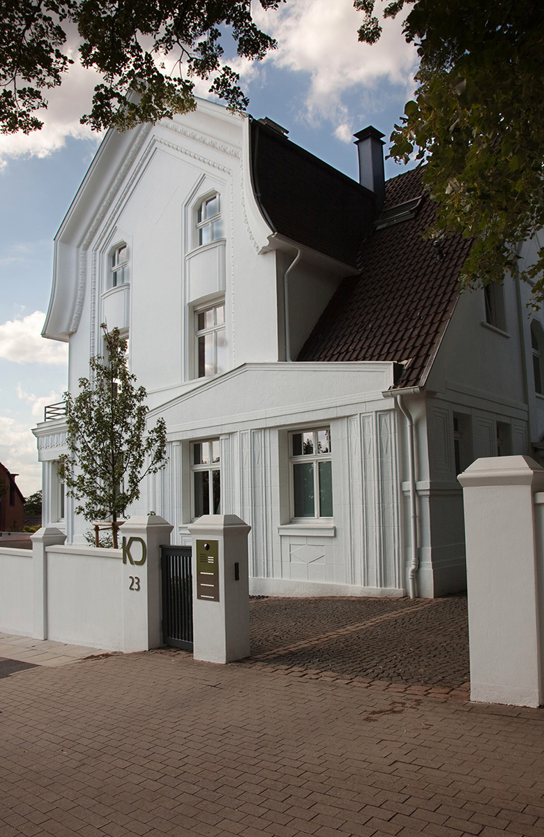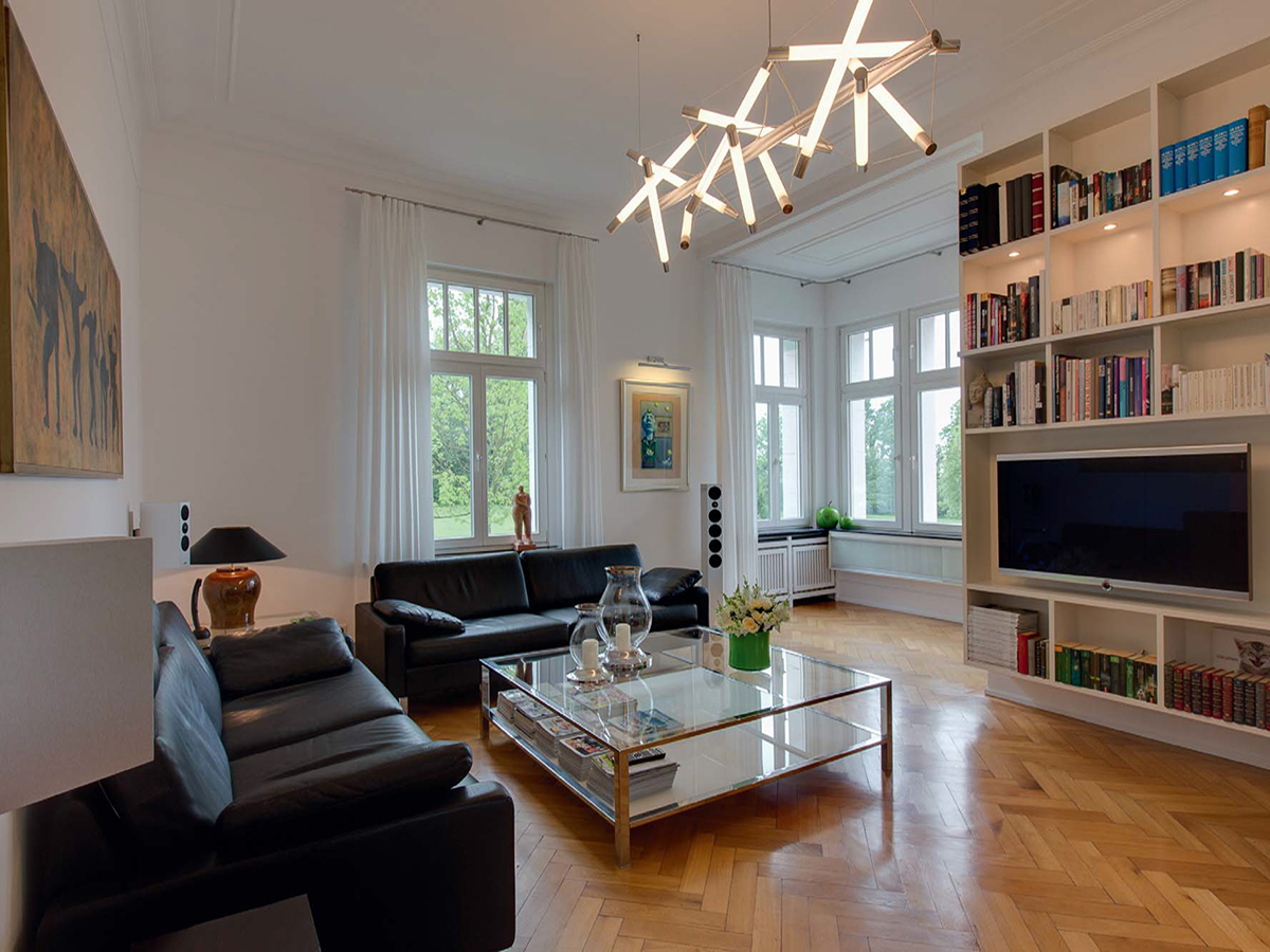 Bei solchen Projekten gibt es für uns als Architekten grundsätzlich zwei Möglichkeiten. Wir können die architektonische Sprache des bestehenden Gebäudes aufgreifen, „historisierend“ bauen – das ist allerdings im wahren Sinne des Wortes nicht zeitgemäß. Oder wir können dem historischen Original bewusst einen modernen Kontrapunkt gegenüberstellen, mit Brüchen spielen. Das erfordert jedoch viel Feingefühl, denn trotz des gewollten Bruches soll ein stimmiges Ensemble entstehen. Dieses Wohnhaus zeigt, dass wir die Kunst des Kontrasts beherrschen. Durch den bewussten stilistischen und farblichen Kontrast mit einem modernistisch gestalteten Anbau hat auch die Villa in ihrer historischen Sinnlichkeit eine ganz neue Präsenz gewonnen.