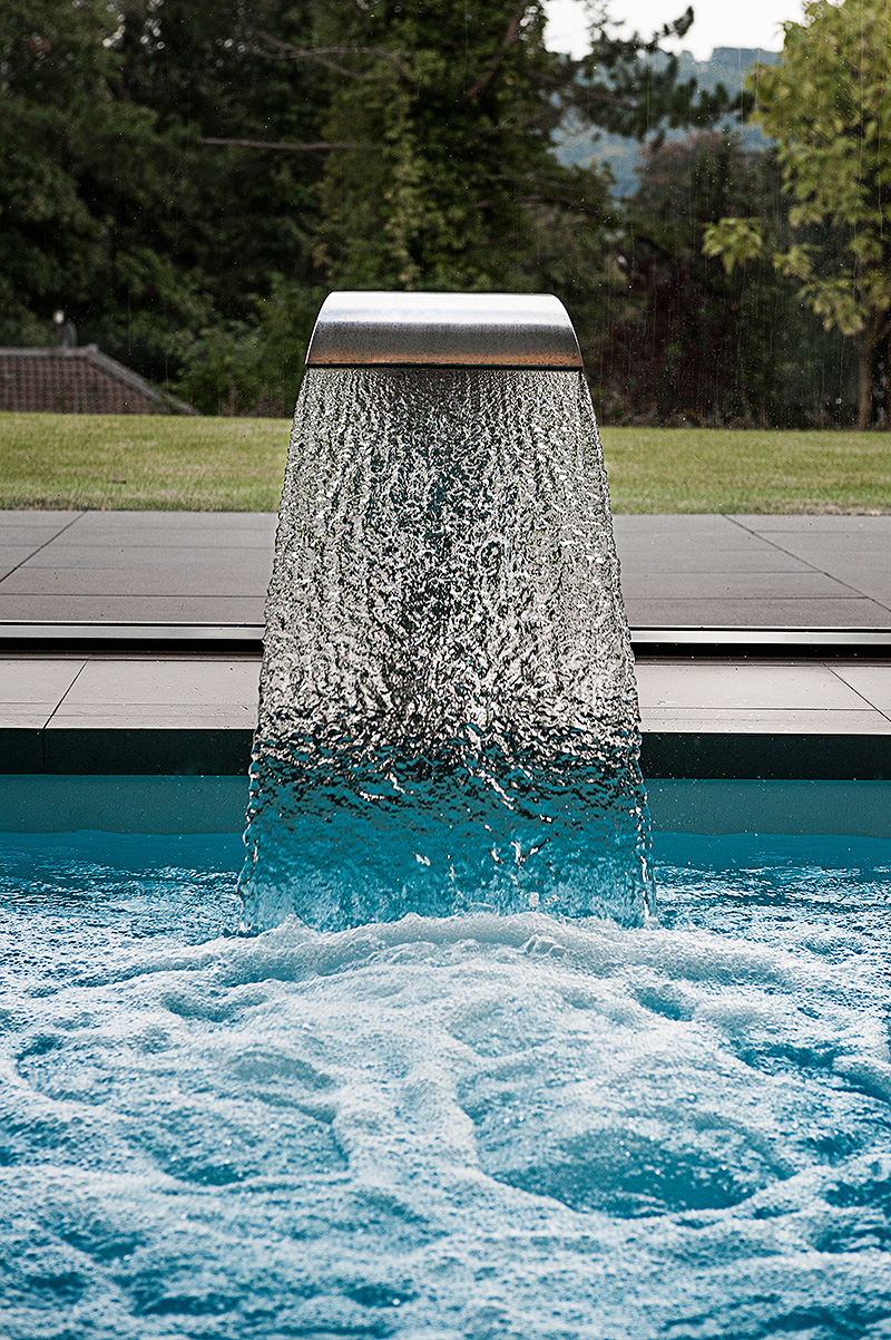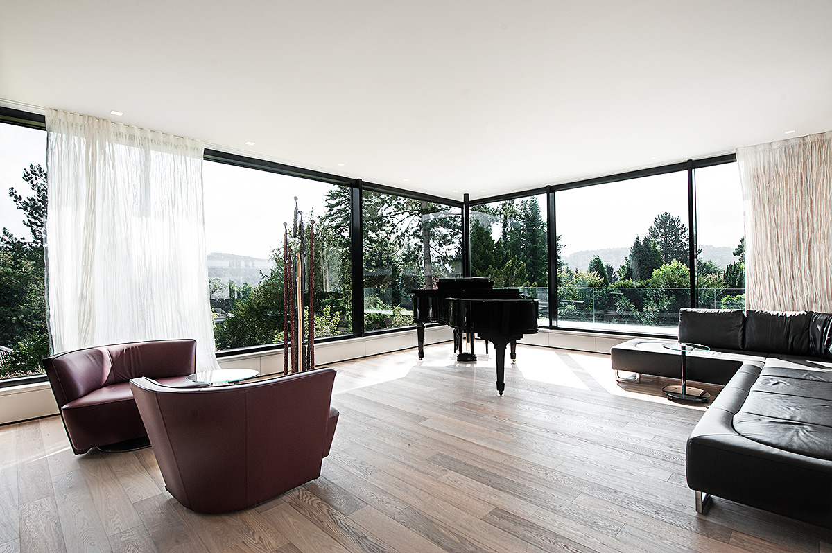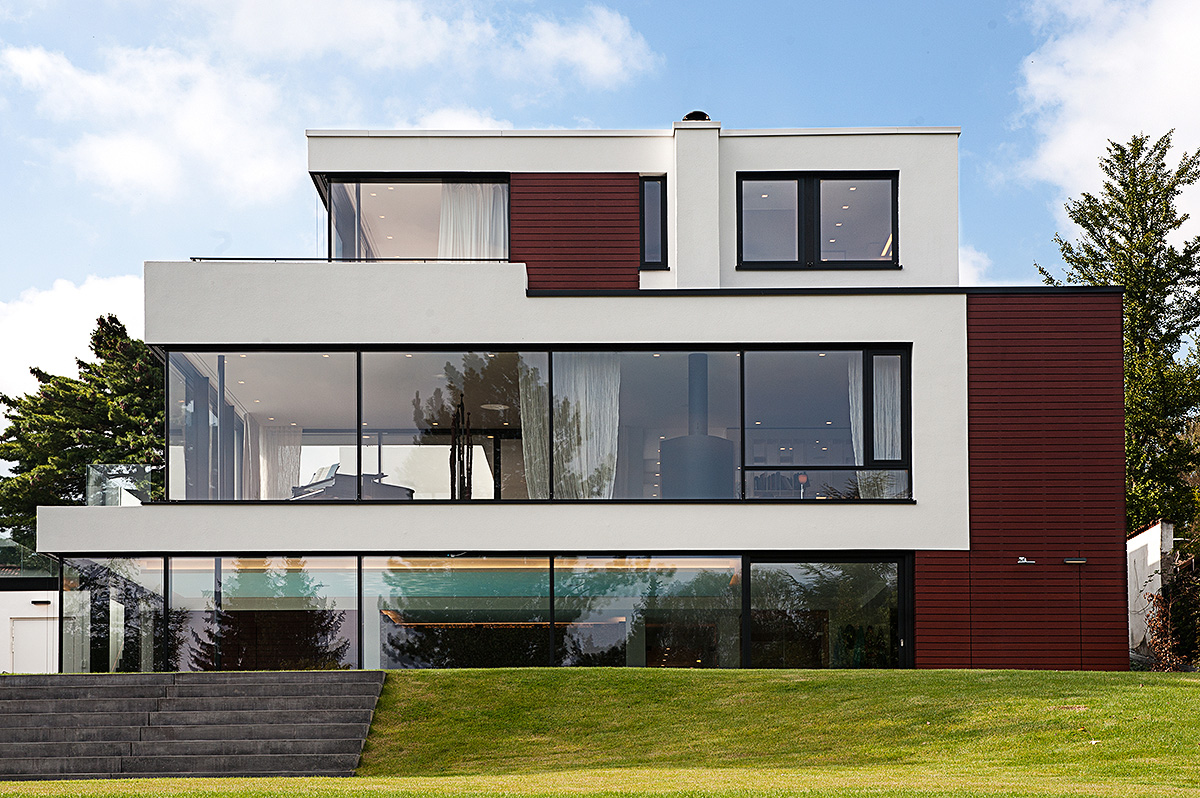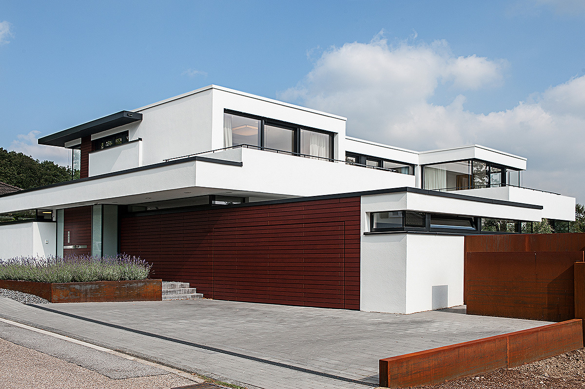 Sämtliche öffentlichen und privaten Wohnbereiche werden von der Eingangshalle aus erschlossen, auch die Wellnessetage im Gartengeschoss – hier befindet sich neben Pool, Sauna und Bad eine weitere Terrasse, die in den Garten mit Sommerküche übergeht. Der Garten ist ein weiteres Highlight des Hauses: Eigentlich stark abschüssig, ist er in ebene Flächen mit unterschiedlichen Nutzungen unterteilt und durch Stahlwände, Treppen und Blutbuchenhecken strukturiert. Auf einem wunderbar sonnigen Hanggrundstück von ca. 1500 qm errichtet, bietet das Gebäude auf ca. 600 qm Wohnfläche ein luxuriöses Wohngefühl, dass der Betrachter von der ruhigen Anliegerstraße aus nur erahnen kann. Die vielen Maßnahmen, die zum Einsparen von Energie ergriffen wurden, sind dem Gebäude nicht anzusehen, weil gestalterisch perfekt integriert.DETAILS