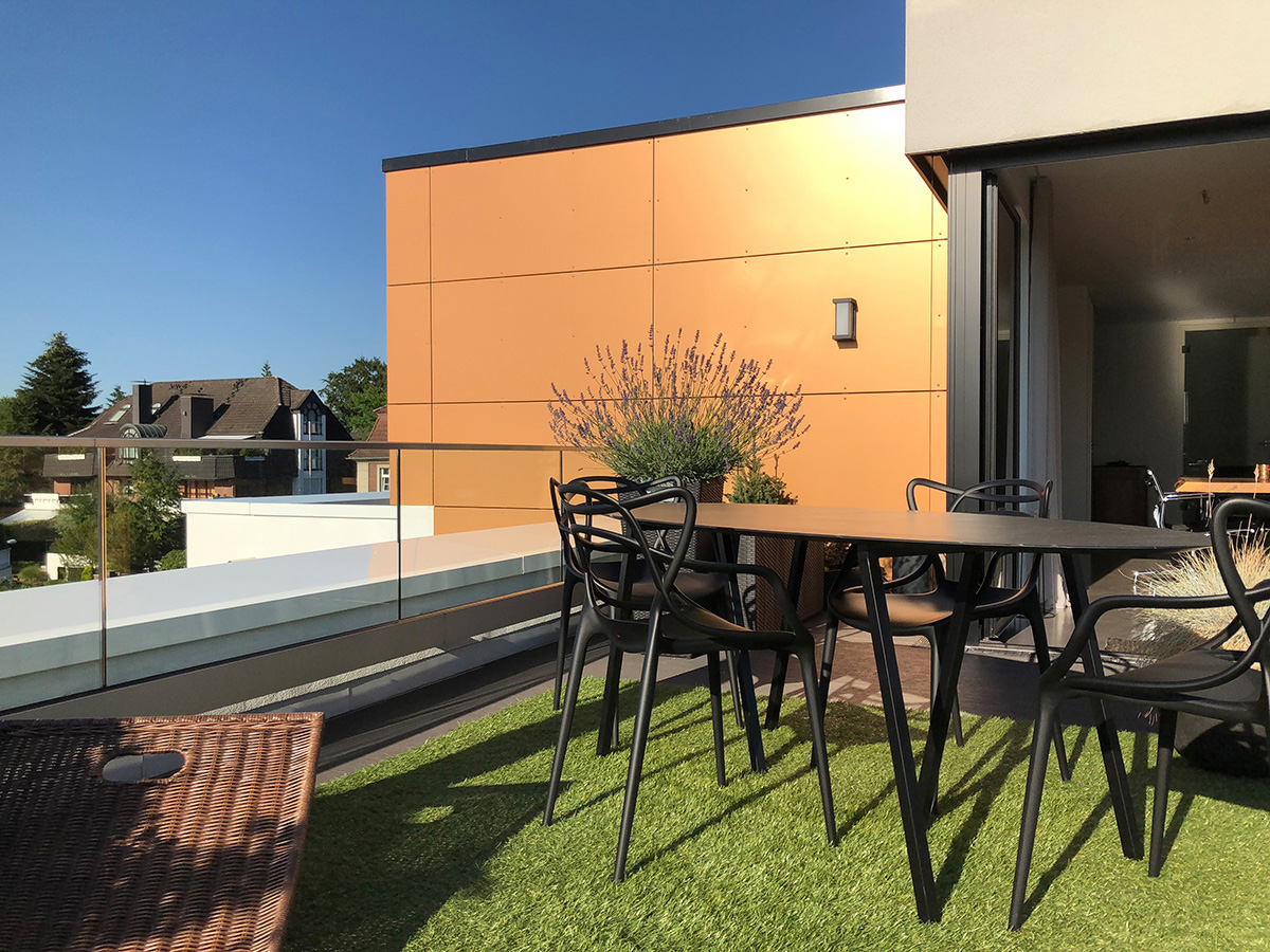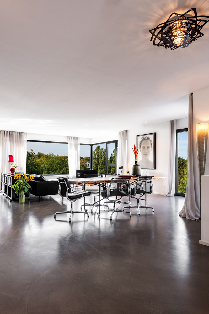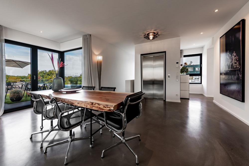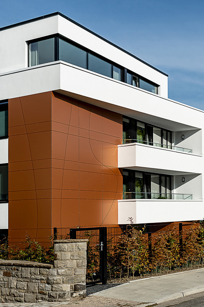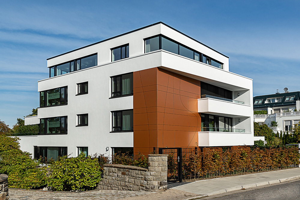 Das neue Gebäude umfasst sechs großzügige Terrassenwohnungen. Jede Etage ist in sich abgeschlossen. Planungsgrundlagen waren ein hoher Anspruch an die Architektur, ein respektvoller Umgang mit dem historisch geprägten Ort sowie der Wille, die individuellen Wünsche der Bewohner zu realisieren – ganz so, wie es sicher auch der Architekt Alfred Fischer im Jahr 1928 bei seinem Entwurf zur originalen Villa Hessberg im Sinn hatte. Dazu ein herrliches, nach Süd-Westen ausgerichtetes Hanggrundstück mit einem fantastischen Blick in das angrenzende Naturschutzgebiet: So konnten einzigartige Lebensräume von ganz besonderer Qualität entstehen.