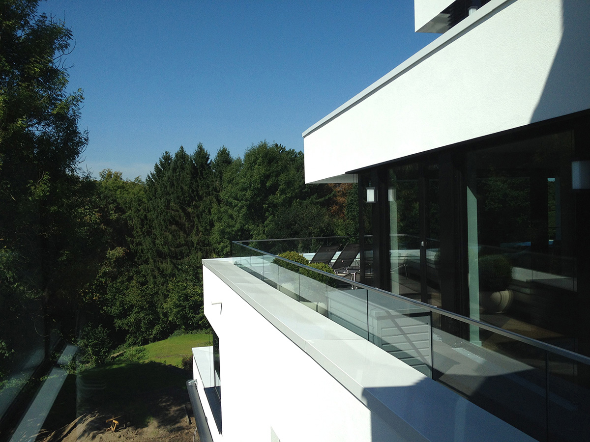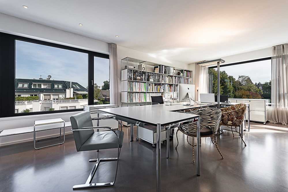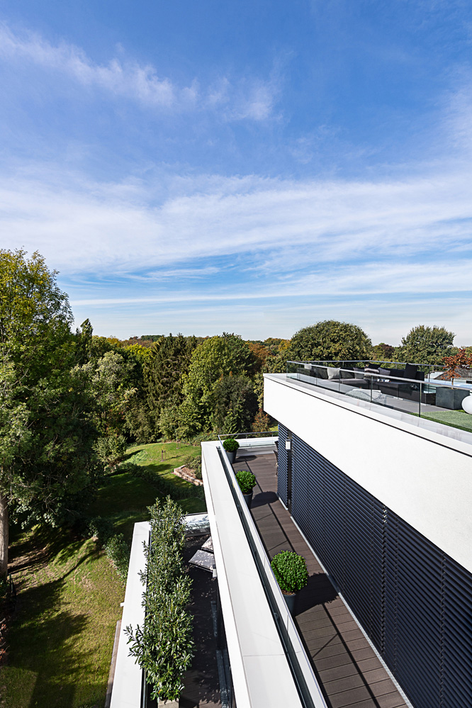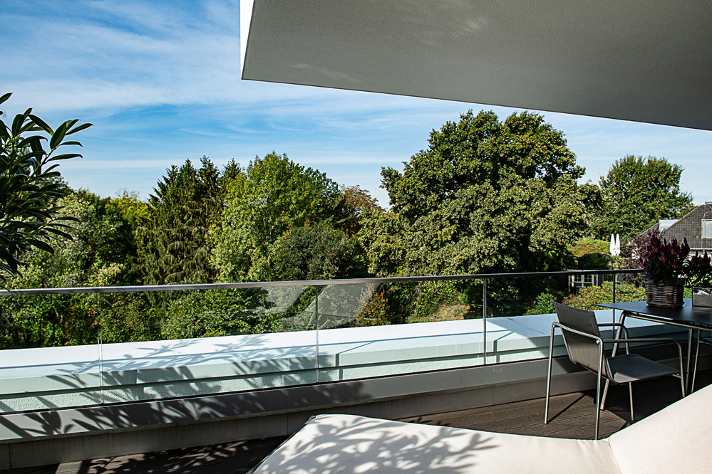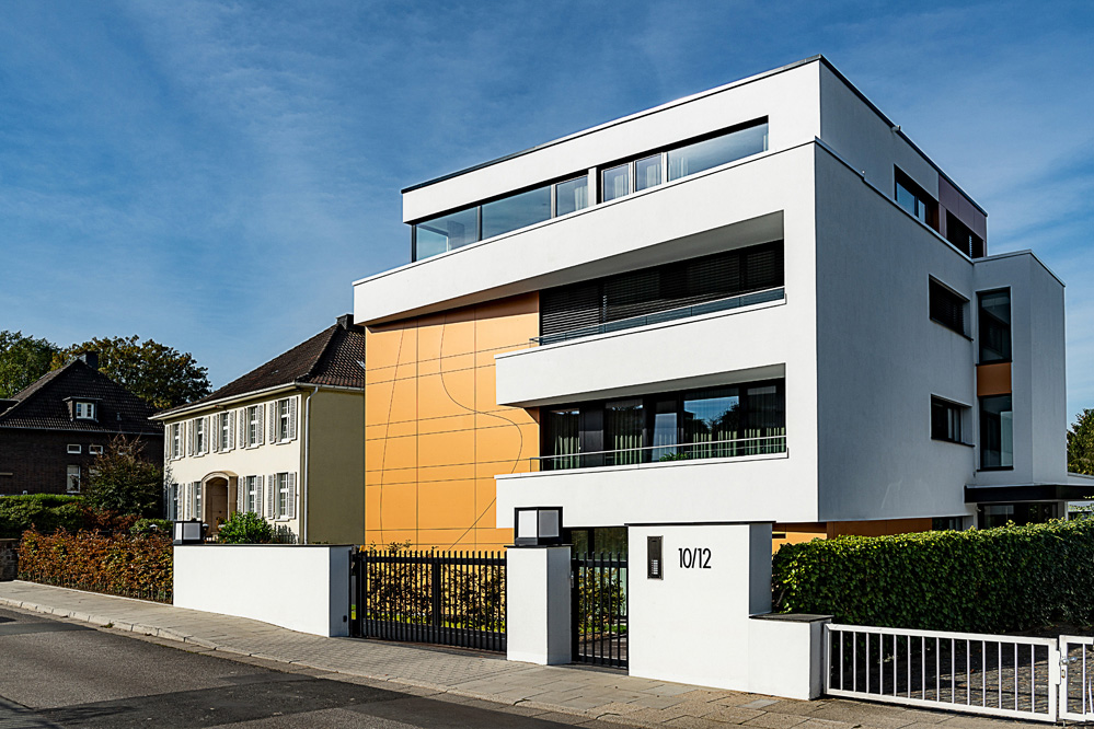 „Viel Luft, viel Raum, viel Licht“: Dieses gestalterische Credo versuchen wir überall dort umzusetzen, wo es die Lage ermöglicht – so auch bei diesem Neubauprojekt im Essener Stadtteil Bredeney. Das Grundstück an einem Steilhang in landschaftlich schöner Randlage bot ideale Voraussetzungen hierfür. Zuvor hatte hier die Villa Hessberg gestanden – ein frühes Beispiel für moderne Architektur in dieser gehobenen Wohnlage.