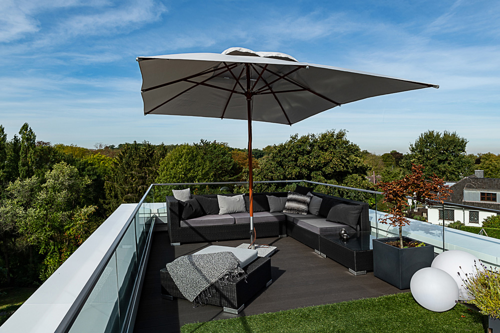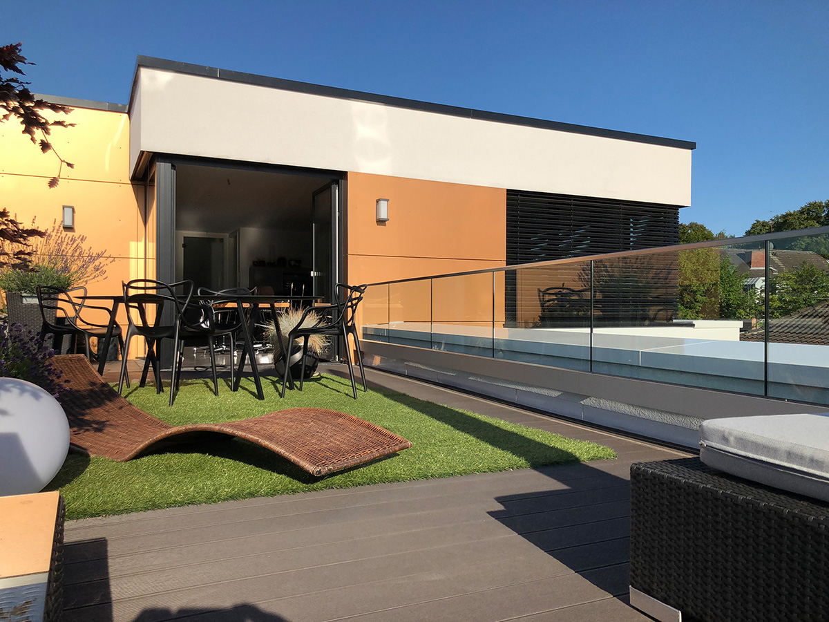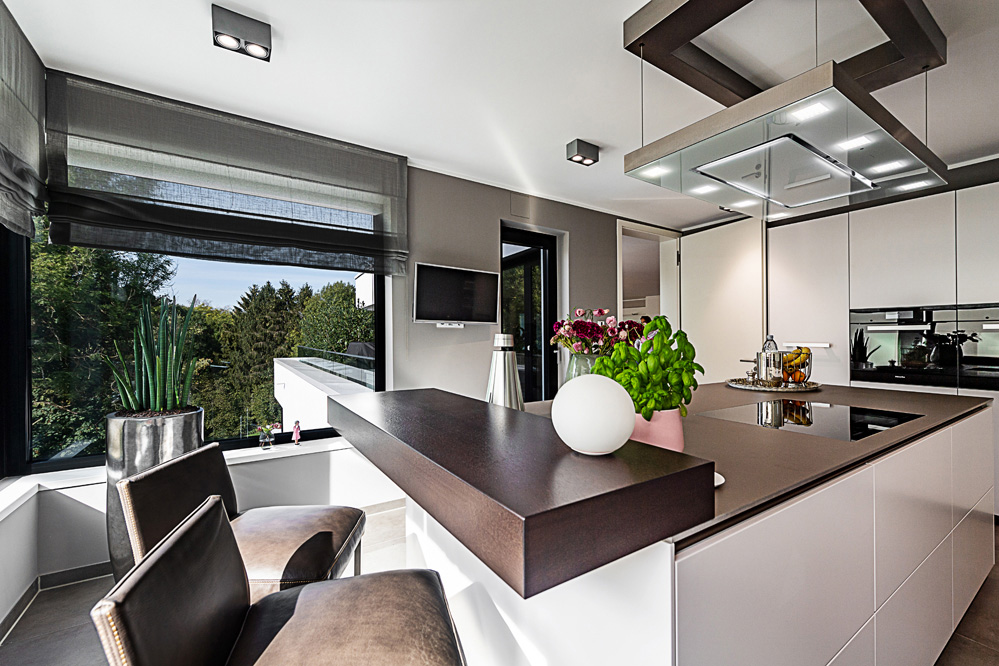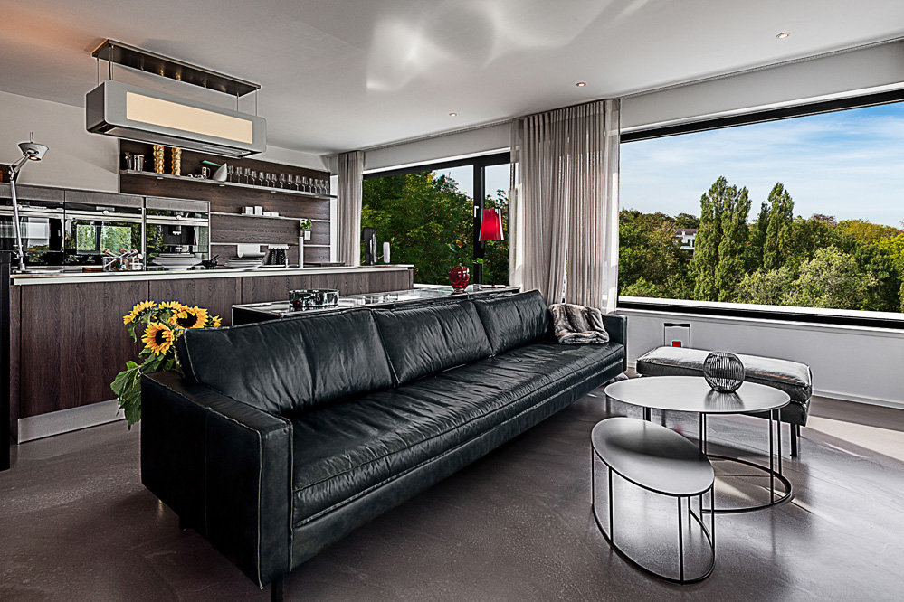 „Viel Luft, viel Raum, viel Licht“: Dieses gestalterische Credo versuchen wir überall dort umzusetzen, wo es die Lage ermöglicht – so auch bei diesem Neubauprojekt im Essener Stadtteil Bredeney. Das Grundstück an einem Steilhang in landschaftlich schöner Randlage bot ideale Voraussetzungen hierfür. Zuvor hatte hier die Villa Hessberg gestanden – ein frühes Beispiel für moderne Architektur in dieser gehobenen Wohnlage.